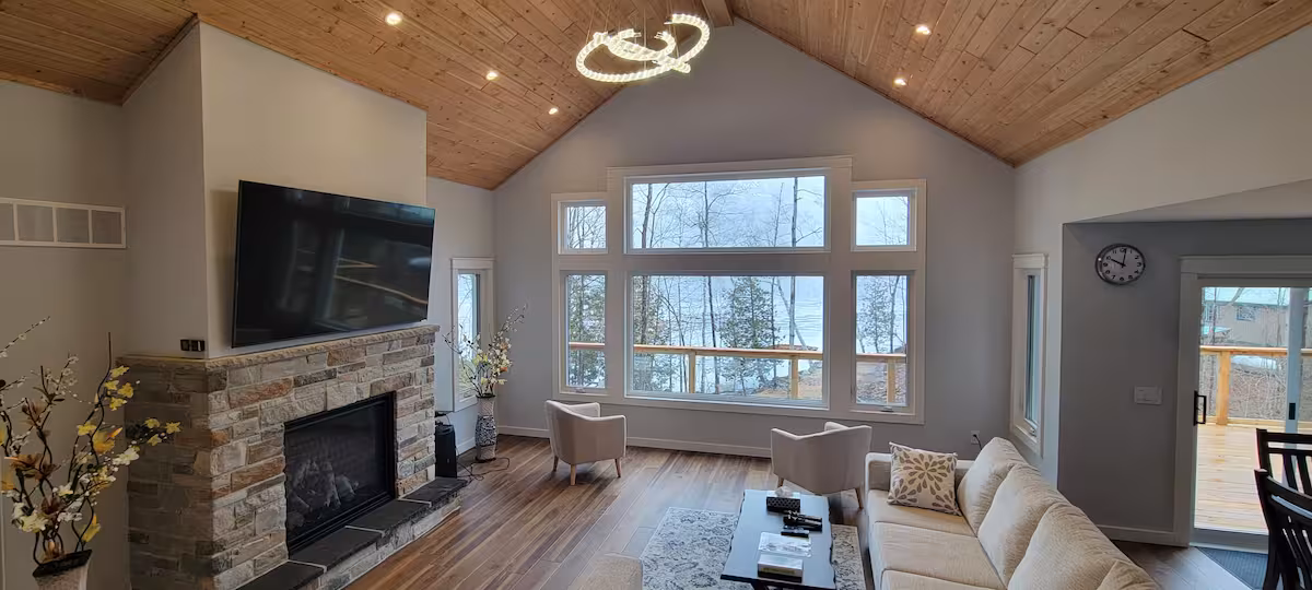 Welcome to our newly built, lakefront luxury cottage—the ultimate setting for large groups seeking a premium getaway. With six spacious bedrooms and three full washrooms, our retreat ensures total comfort for all your friends and family. The main floor features a modern, open-concept living and dining area that flows seamlessly onto a sprawling deck with stunning lake views. Inside, you will find a dedicated games floor, a kids' playroom in the cozy loft, and a quiet workspace for those who need to stay connected while away.
