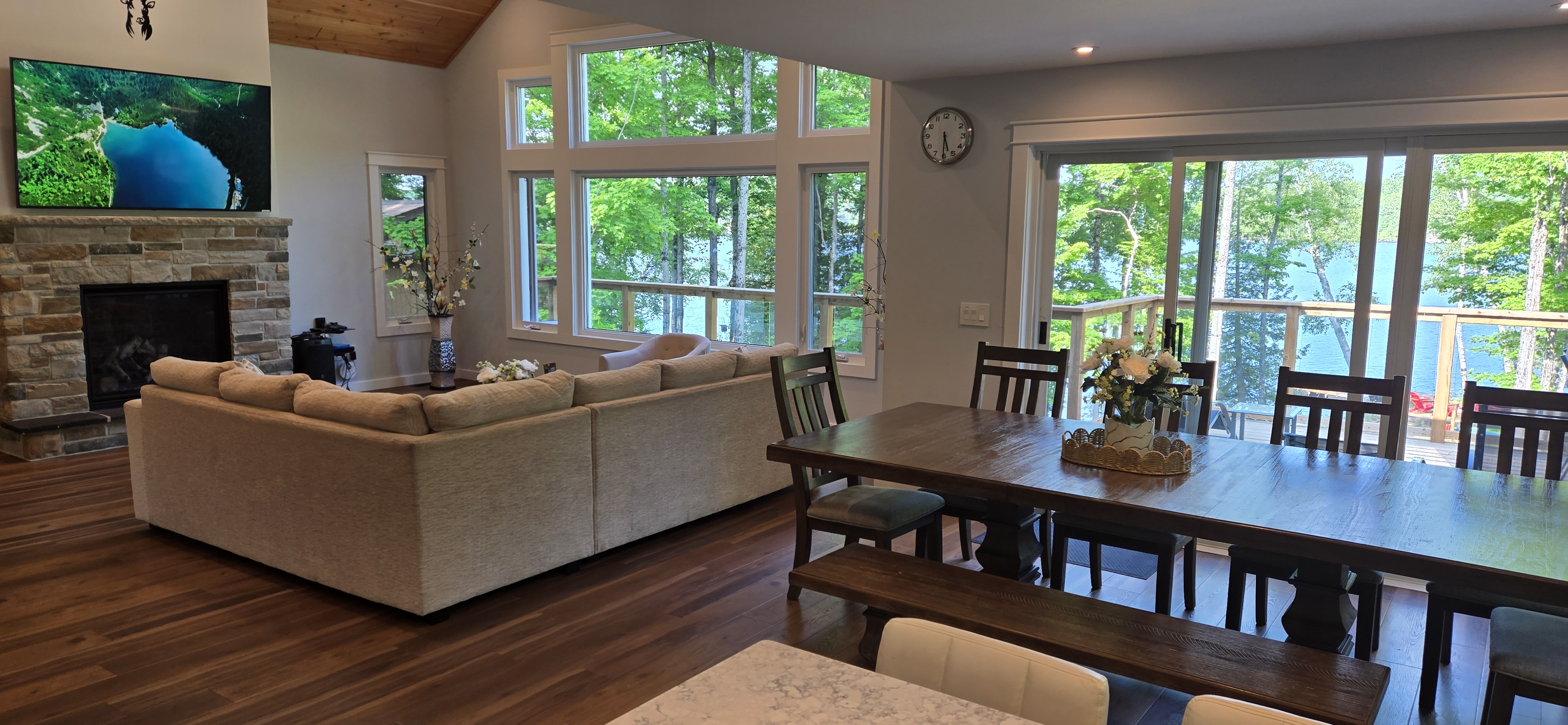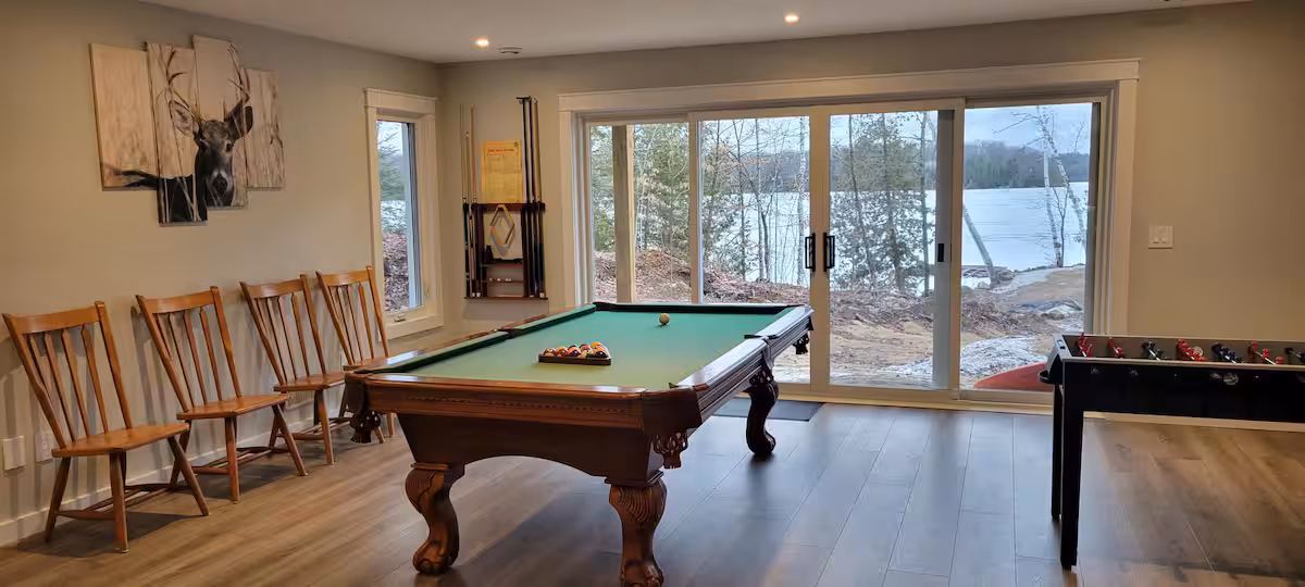 Welcome to our newly built, lakefront luxury cottage—the ultimate setting for large groups seeking a premium getaway. With six spacious bedrooms and three full washrooms, our retreat ensures total comfort for all your friends and family. The main floor features a modern, open-concept living and dining area that flows seamlessly onto a sprawling deck with stunning lake views. Inside, you will find a dedicated games floor, a kids' playroom in the cozy loft, and a quiet workspace for those who need to stay connected while away.
